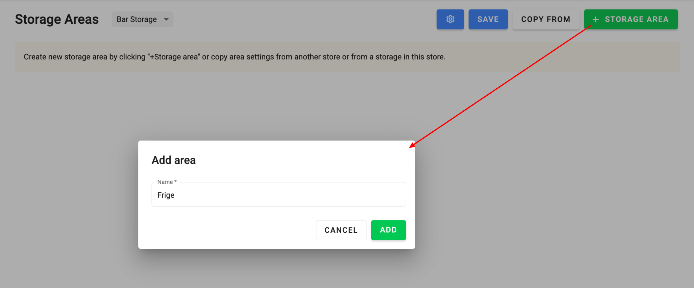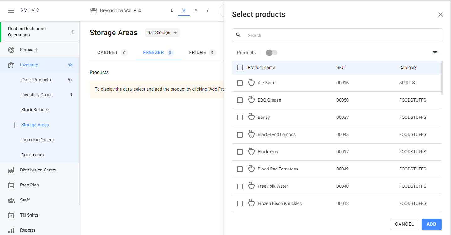 Przejdź do Codzienne operacje restauracyjne > Inwentaryzacja > Obszary magazynowe.