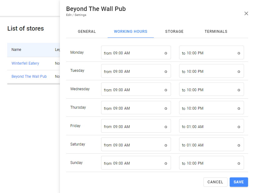 Użyj tej zakładki, aby określić dni i godziny, w których Twój lokal jest otwarty dla gości.