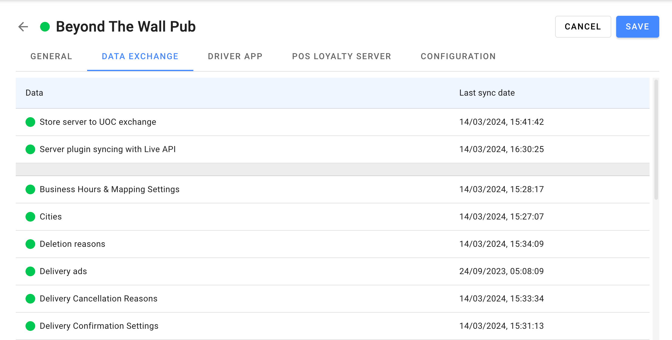 Zakładka Wymiana danych wyświetla czas ostatniej synchronizacji między usługami. Udane synchronizacje są oznaczone na zielono.