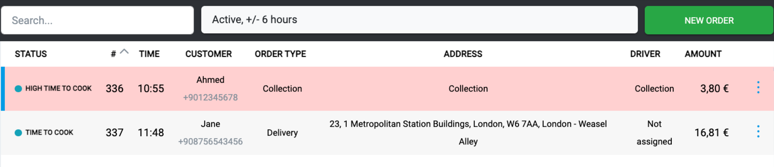 Aby wyszukać zamówienia, możesz wpisać numer telefonu klienta, numer zamówienia, kwotę zamówienia oraz adres dostawy w pasku wyszukiwania. Nie jest konieczne wpisywanie pełnego numeru — wyszukiwanie działa nawet jeśli zapytanie częściowo pasuje do szczegółów zamówienia.