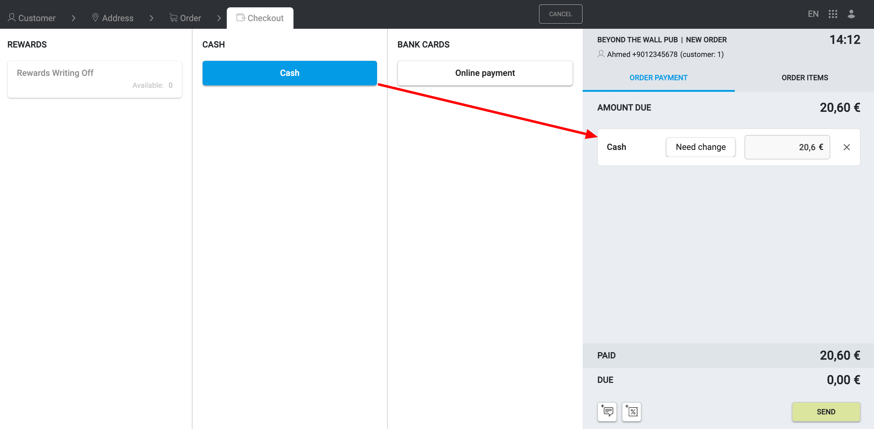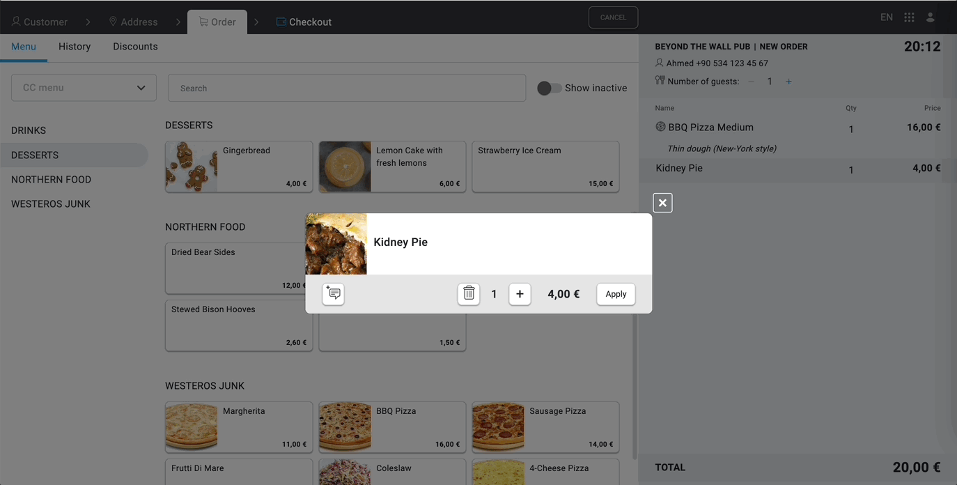 Aby zakończyć zamówienie i wysłać je do POS, użyj bloku szczegółów zamówienia po prawej stronie.