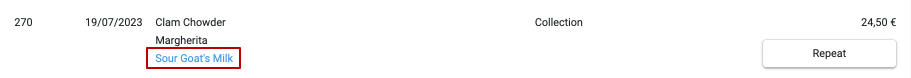 Możesz także szybko dodać jeden produkt z poprzedniego zamówienia do nowego. Kliknij na produkt w zamówieniu, wtedy zostanie on podświetlony na niebiesko i dodany do panelu szczegółów zamówienia. Aby dodać wszystkie produkty z poprzedniego zamówienia, kliknij przycisk Powtórz.