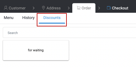 Na zakładce Rabaty możesz ręcznie zastosować rabat do zamówienia. Wszystkie rabaty są synchronizowane z Syrve Loyalty (szczegóły w artykule Programy lojalnościowe). Rabaty automatyczne są stosowane do zamówienia zgodnie z skonfigurowanymi warunkami.