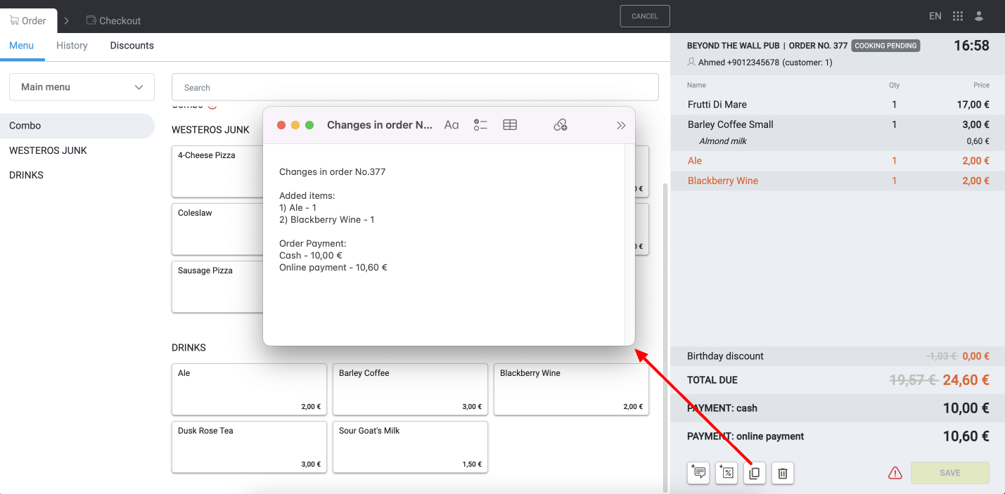 Jeśli coś pójdzie nie tak i nie możesz zapisać zamówienia po edycji, po prostu skopiuj wprowadzone zmiany i wyślij je do kuchni. W razie potrzeby dołącz instrukcje. Kliknij , aby skopiować zmiany do schowka.