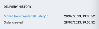 Przeniesione zamówienie będzie widoczne w historii zamówień sklepu, do którego zostało przeniesione. Powiadomienie o przeniesieniu pojawi się w bloku Historia dostawy w szczegółach zamówienia.