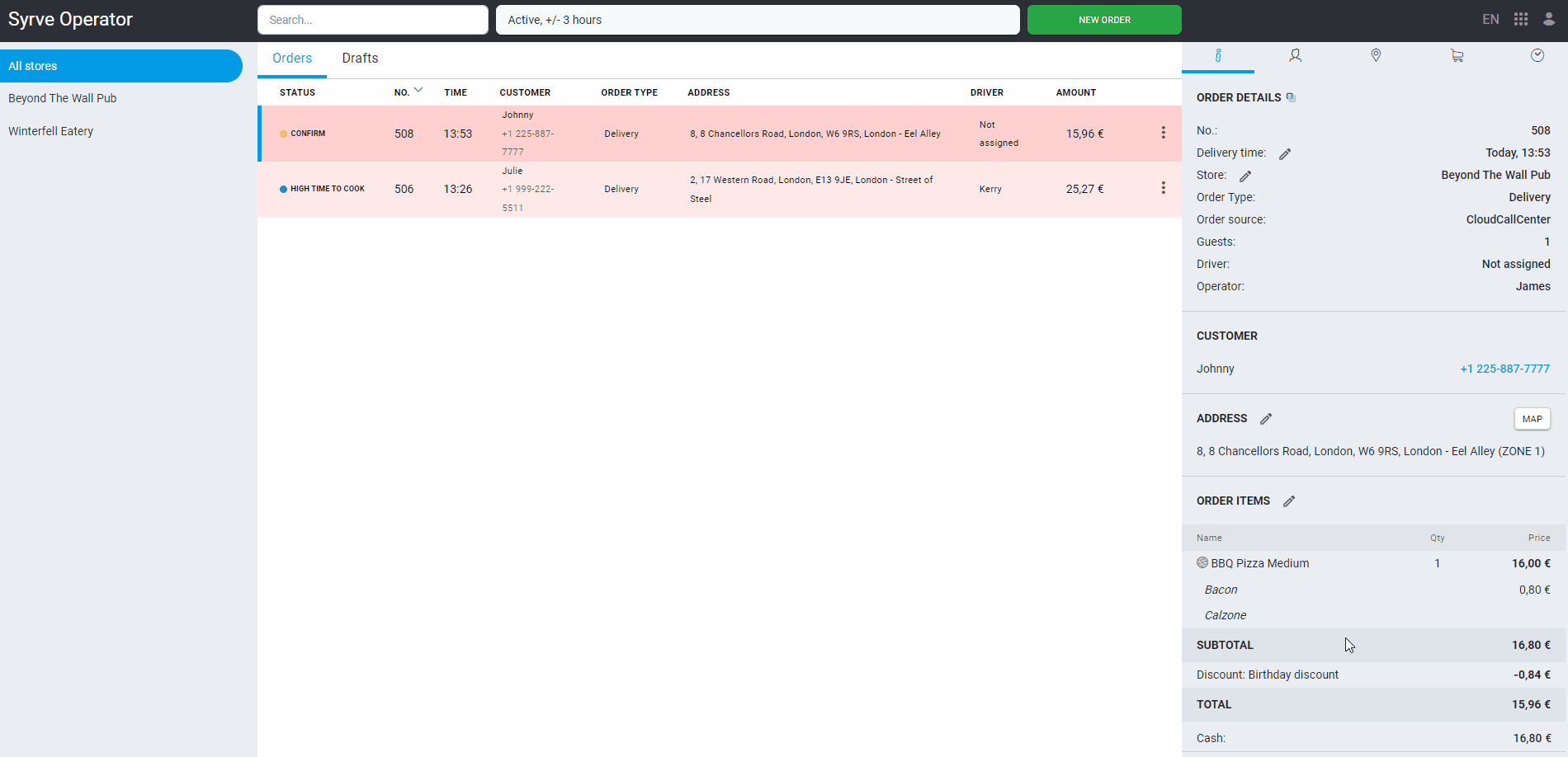 Operator może edytować istniejące zamówienia lub przenieść je do innego sklepu, jeśli to konieczne. Zamówienie można również anulować na POS sklepu, który je realizuje. W zależności od aktualnego statusu zamówienia, możesz zmienić, anulować lub przełożyć zamówienie.
