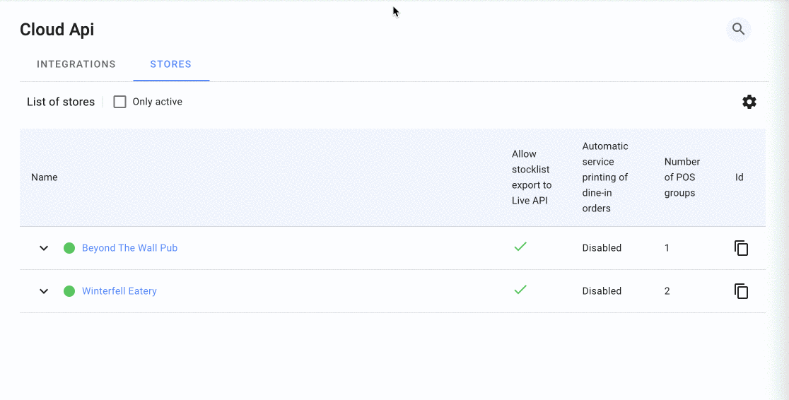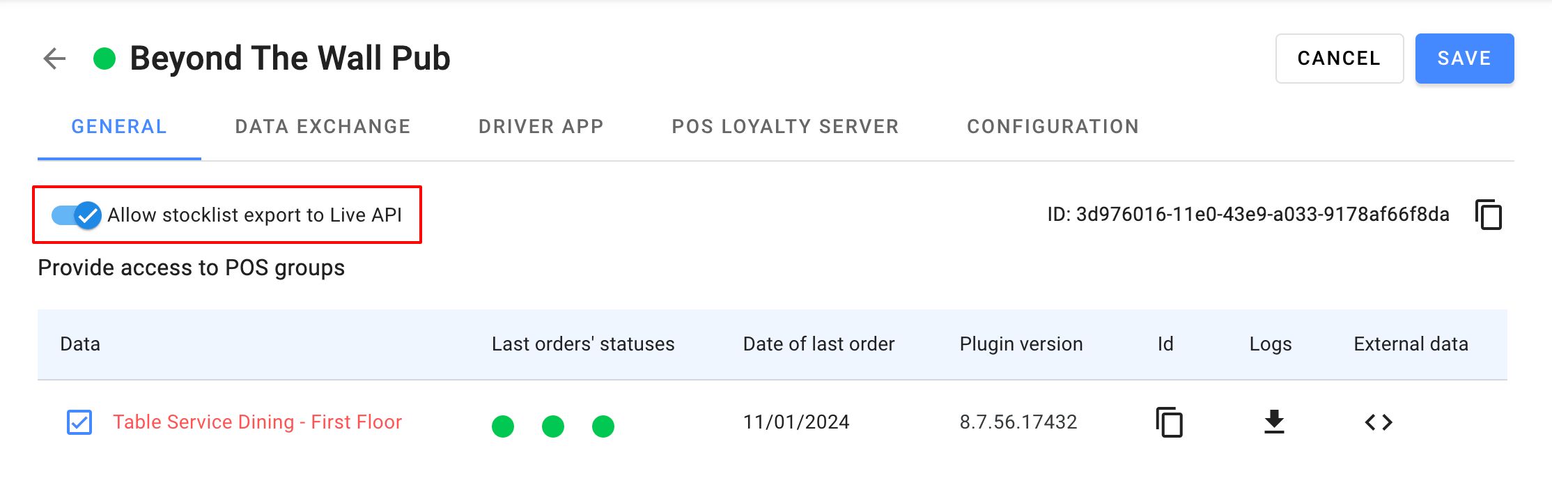 Kliknij na jeden ze sklepów. Zaznacz pole Zezwól na eksport listy stanów do Live API na zakładce Ogólne.