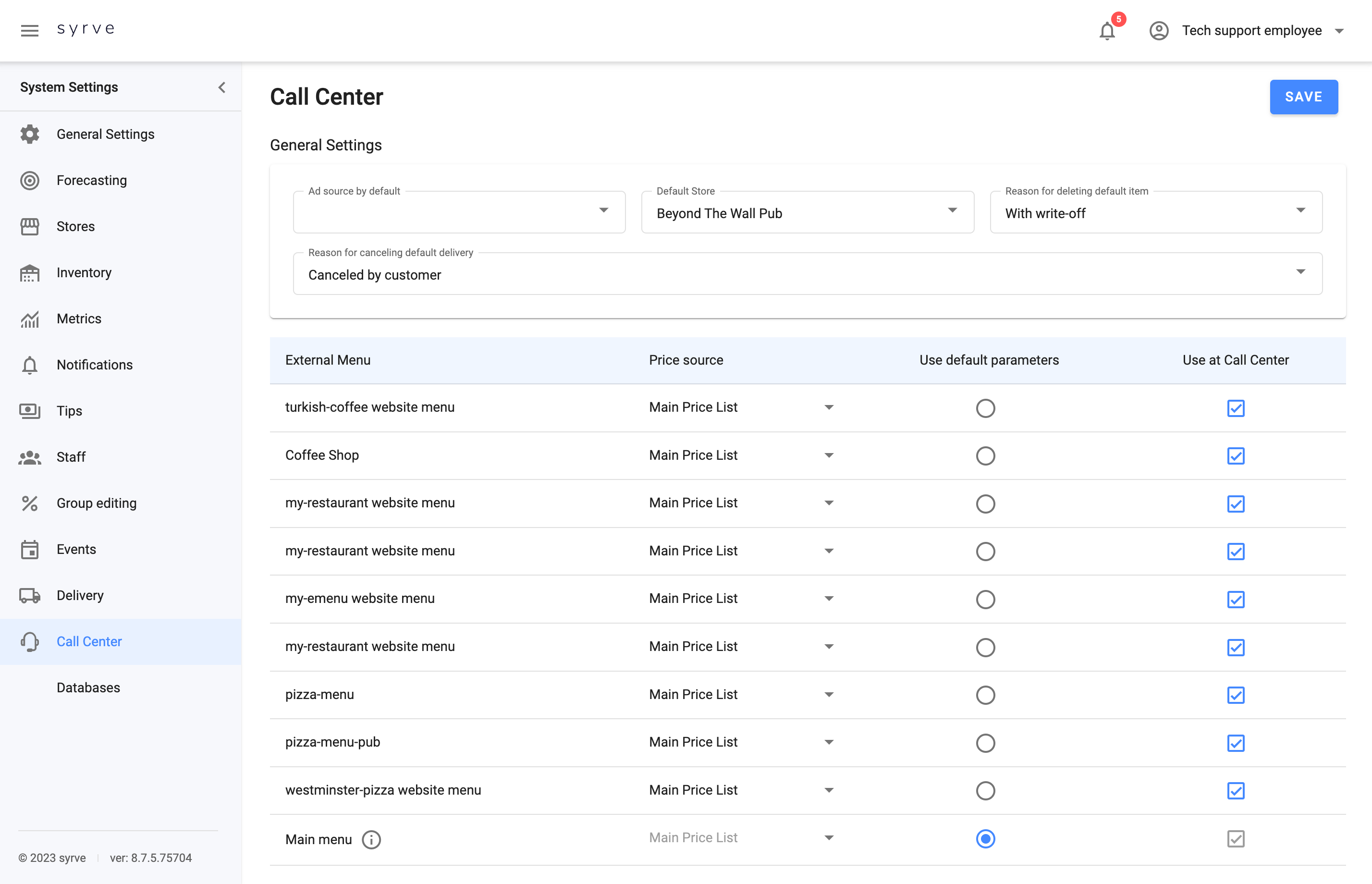 W aplikacji Syrve przejdź do Ustawienia systemu i konserwacja > Call Center.